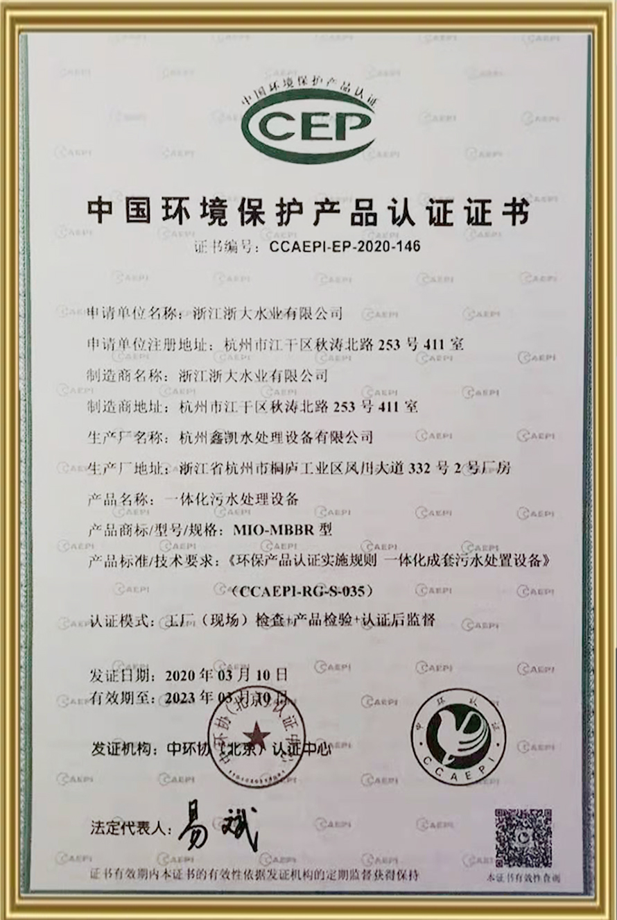 中國環境保護產品認證證書